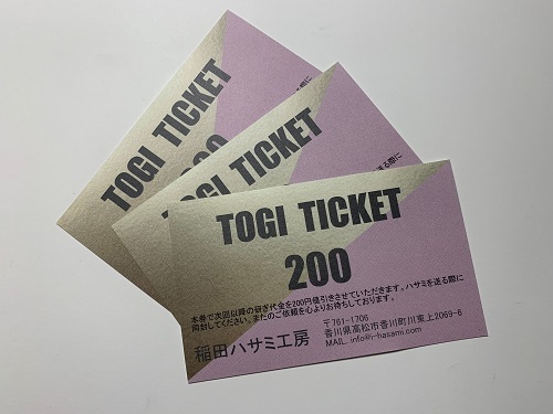 For Customers次回以降、ご使用いただける値引きチケットを同封いたします。1丁につき200円分が付いてきます。